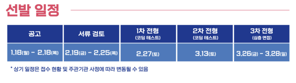 접수기간은 1.18일부터 2.18일이며 선발 일정은 다음과 같습니다.