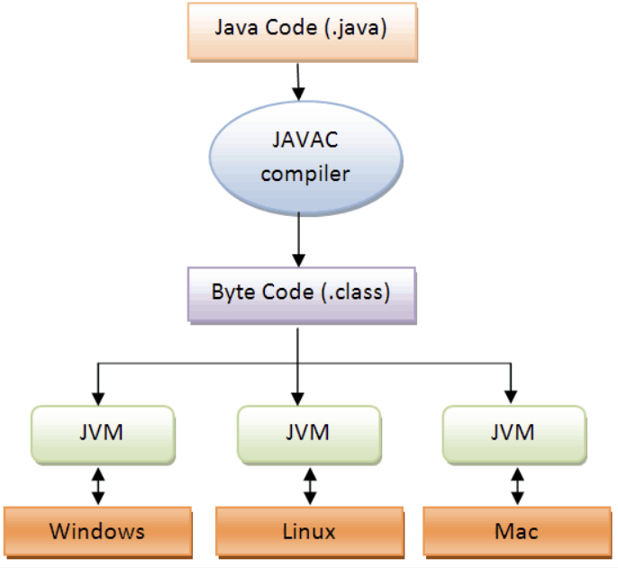 JVM이란 Java Virtual Machine으로 실 운영체제 대신해서 자바 프로그램을 실행하는 가상의 운영체제 역할을 한다. 자바 프로그램은 완전한 기계어가 아닌, 중간 단계의 바이트 코드이기 때문에 운영체제가 자바 프로그램을 바로 실행할 수 없다. 하여, JVM을 이용하여 자바 프로그램이 여러 운영체제에서 동일한 실행 결과가 나오도록 하는 '자바를 실행시키는 가상의 기계'이다.