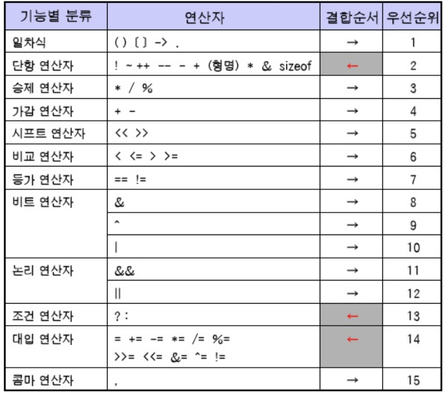 | 복합 대입 연산자 | 변수 | &= | 피연산자 | 변수 = 변수 & 피연산자와 동일 |