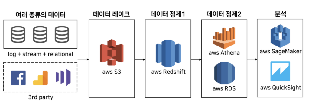1. AWS 스토리지 서비스인 S3에 우선 데이터를 모두 다 넣고 (데이터 레이크의 형식. 정리되지 않음) 그 이후 정제
