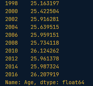 # Group by the Year, and find the mean Age