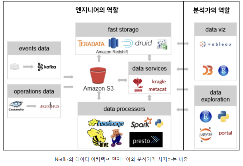 데이터 엔지니어 : 데이터베이스 및 대규모 처리 시스템과 같은 아키텍쳐 개발, 구성, 테스트 및 유지 관리