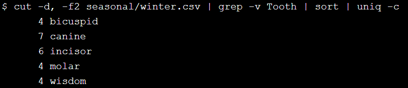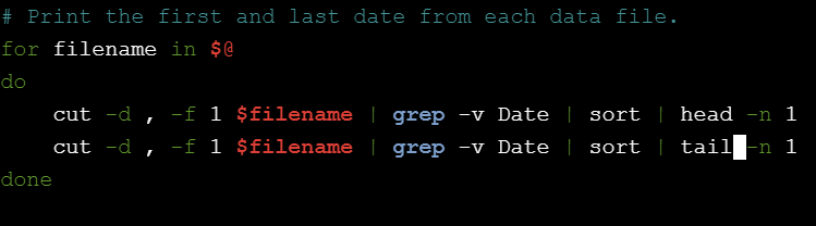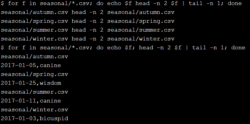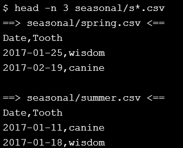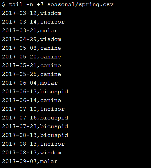 > 로 winter.csv의 마지막 5개의 줄을 last.csv로 복사