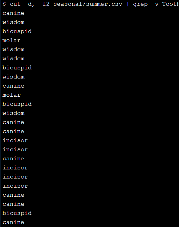 느낌표 뒤에 !head 또는 !cut과 같은 명령 이름을 입력하여 명령을 다시 실행할 수 있다.