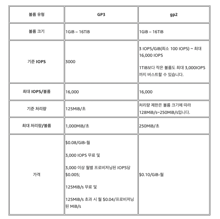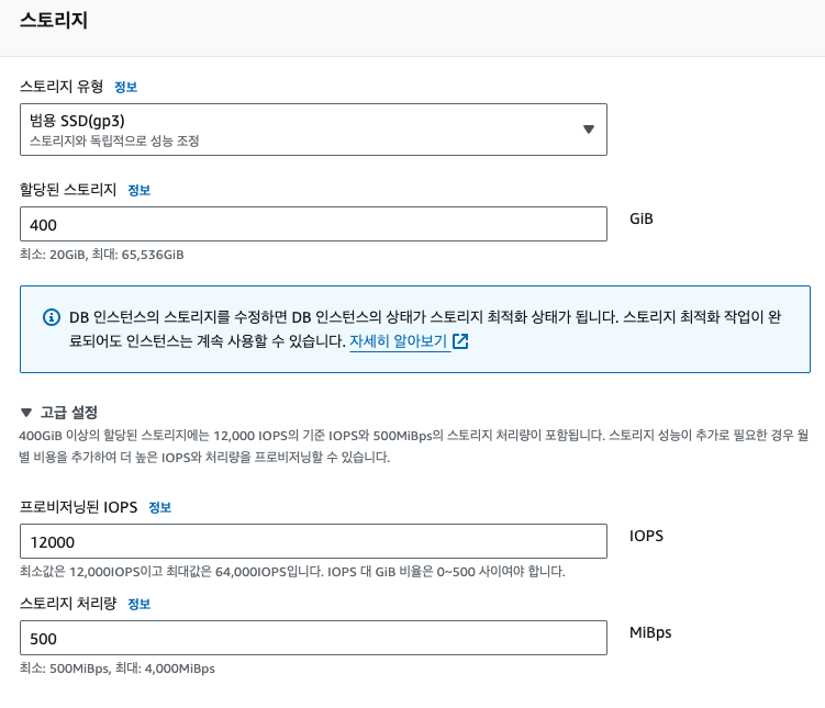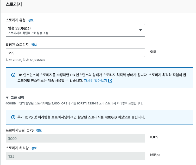 gp3의 경우 자동 스토리지 확장 기능을 사용하게 되면 다음의 고려도 필요할듯 하다.