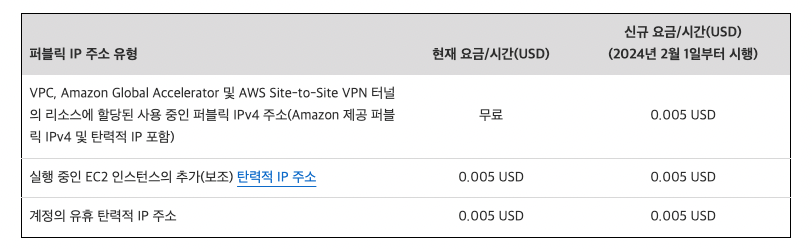 AWS Public IPv4 주소 요금 변경 (24년 02월 01일 ~ )