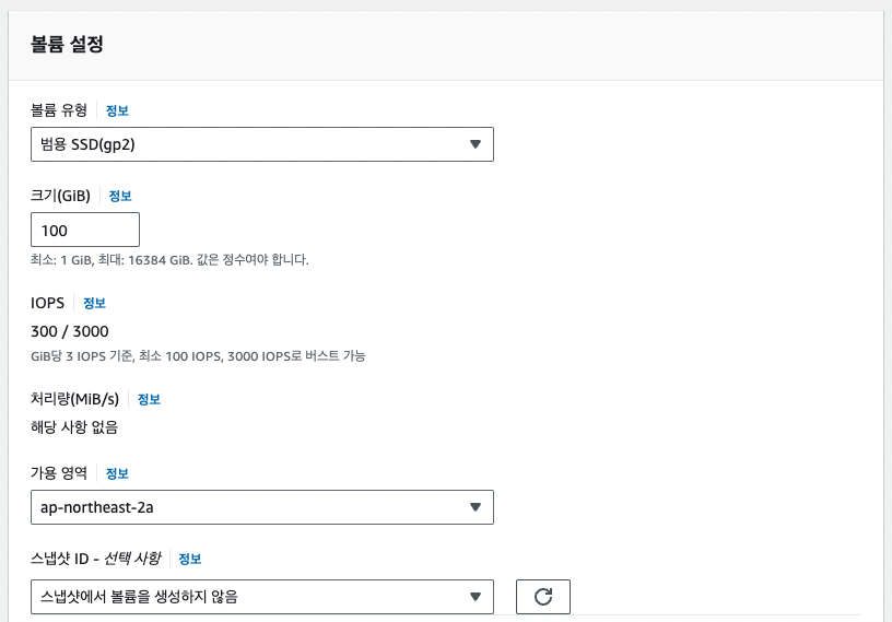 gp2의 경우 100GB당 IOPS가 300씩 올라가게 된다.
