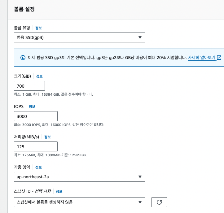 1. EBS를 생성(기존 가용영역에 동일하게)
